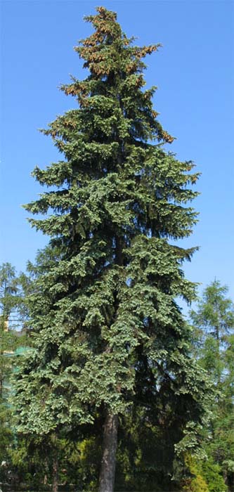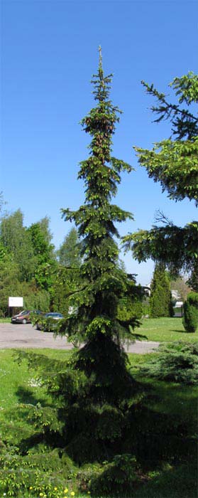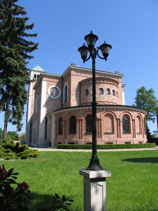 Urodziwe świerki nadają stosunkowo młodej parafii dostojeństwa.